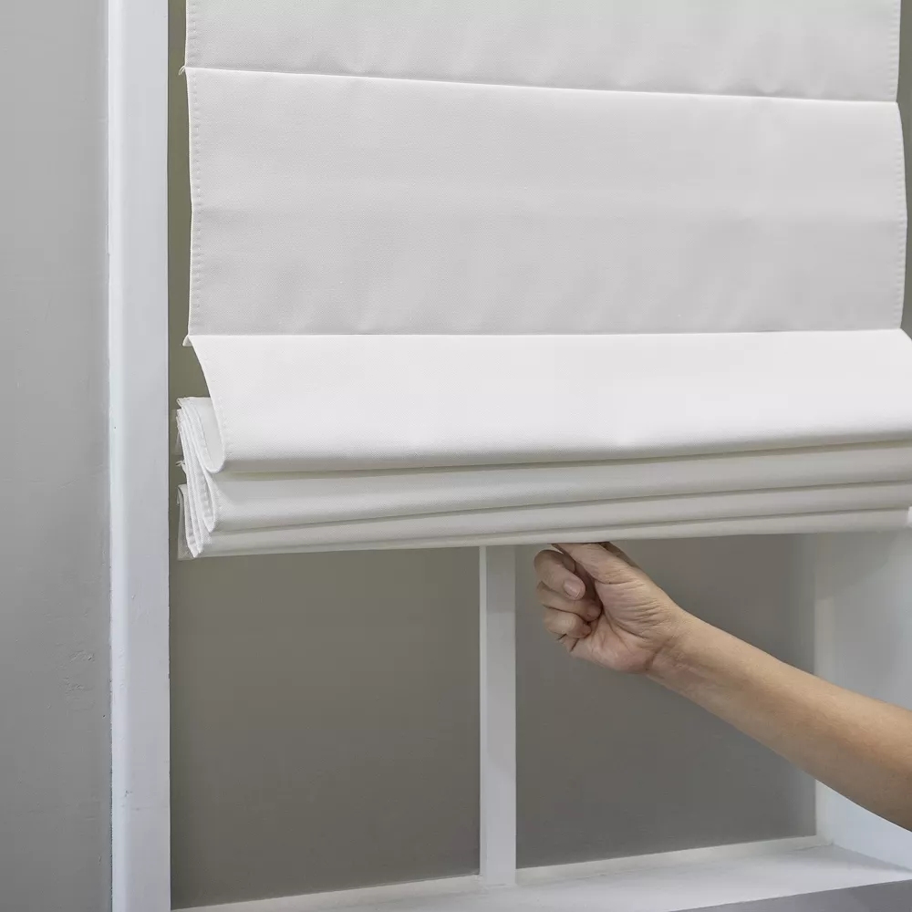 - Sonoma Classic Room Darkening Roman Shades can be both a stylish and functional addition to a living space. Classic Roman shades are made from a quality poly-cotton blend available in seven stunning colors; white, cream, linen, aqua, indigo, light gray, and gray. Each color features a white thermal backing to provide room darkness and energy-efficiency in every room. Each roman shade includes a 6 inch fabric valance to cover the top rail and give a touch of elegance. Cordless Roman Shades open in a unique way, simply hold the bottom rail and gently raising or lowering to a desired height. Each pleat will stack up evenly underneath each other as you open them.