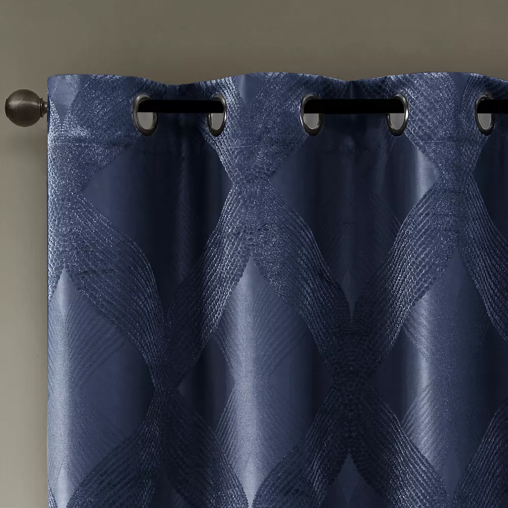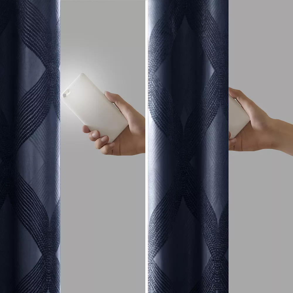Show off your decor style with this gorgeous SunSmart Abel ogee knitted jacquard total blackout curtain.