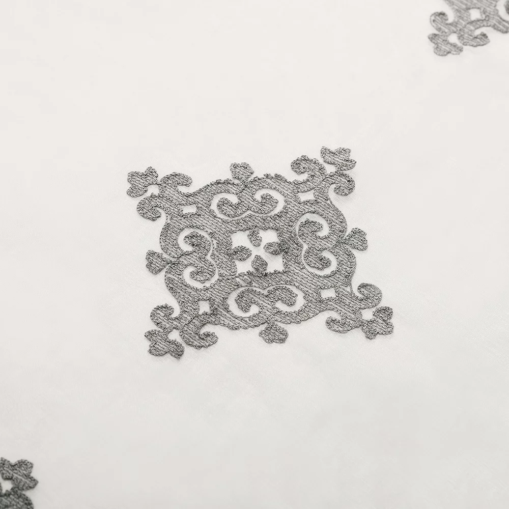 - Revamp your window decor with the Damask Embroidered Sheer Curtain Set. These lovely panels feature gorgeous needlework and a symmetrically embroidered Damask pattern that creates a charming design. Crafted from polyester with a stainless grommet header, this panel duo is durable and modern in design. Semi-sheer curtains mingle well with any decor style and fit in nicely with bold to soft color patterns. This exquisite set is sure to become a highlight in your home that you’ll enjoy.