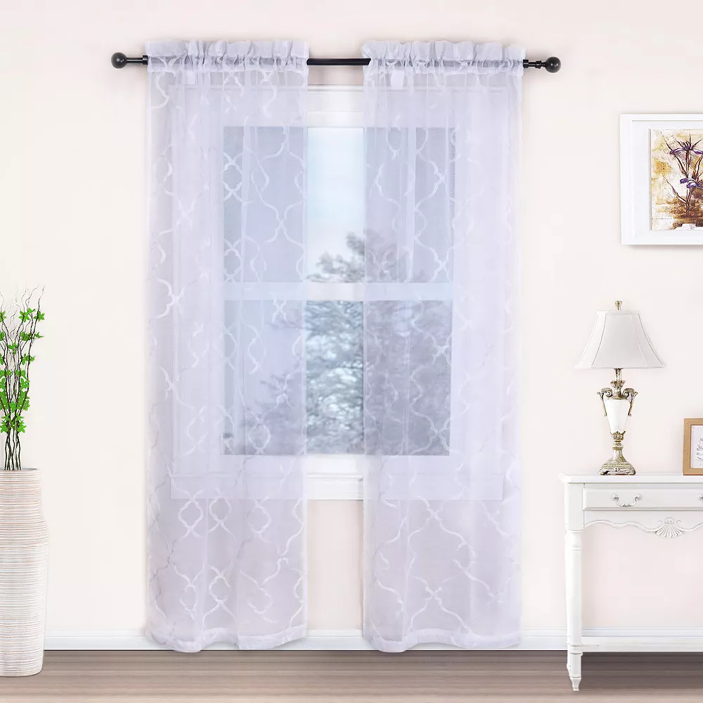 Made with a lovely floral scroll design, these Superior sheer lattice window curtain panels create an elegant atmosphere in your home.