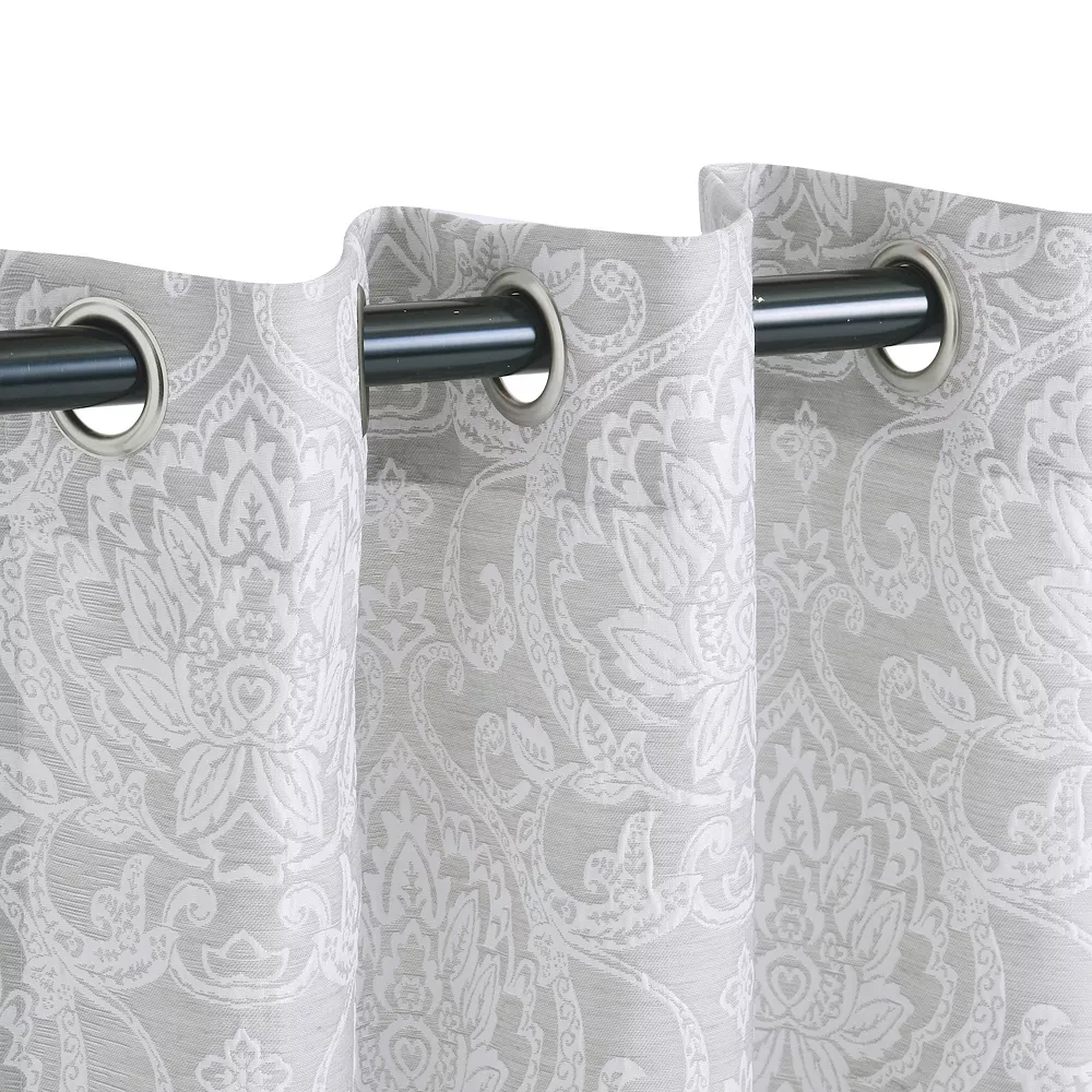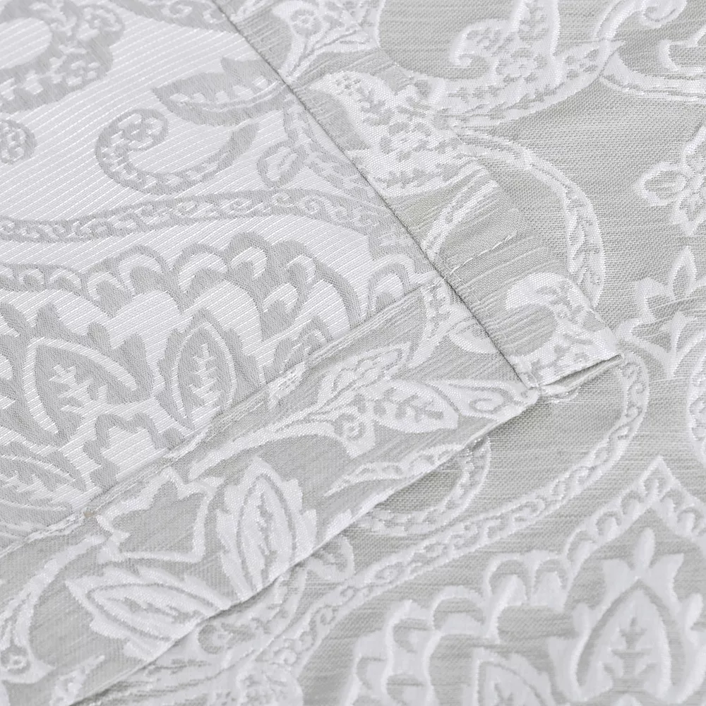 - This beautiful panel duo features a crisp, white floral damask pattern woven into a soothing backdrop in your choice of Light Grey or Raindrop