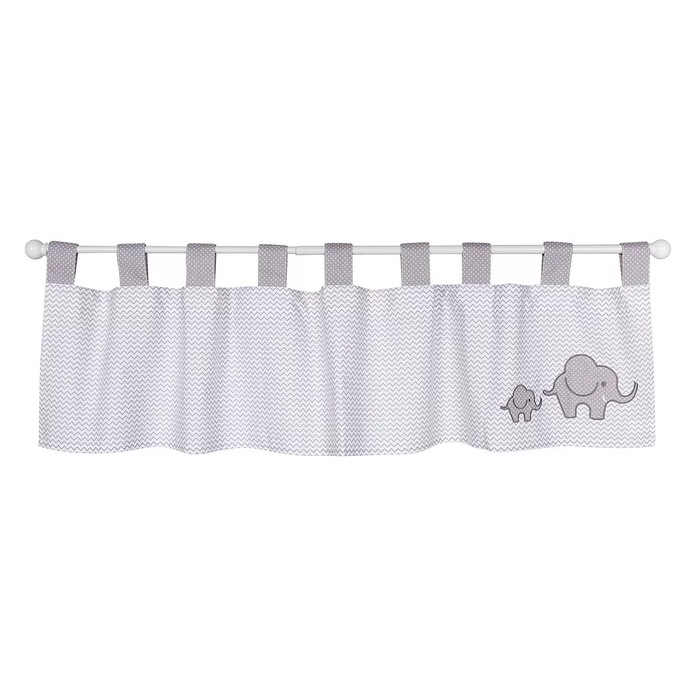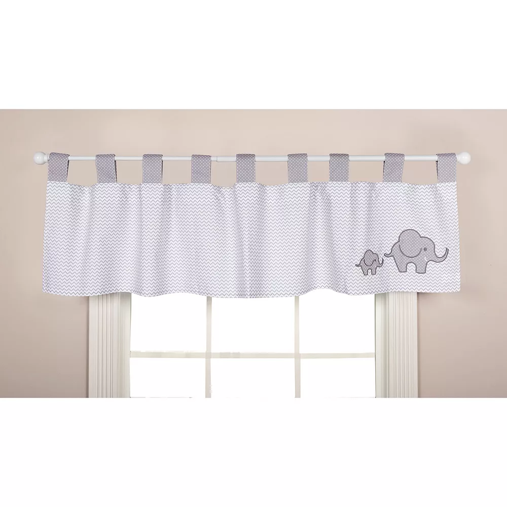 Add cute, cozy style to your baby’s nursery with this Trend Lab Safari Chevron window valance, featuring two adorable elephant appliques. In gray/white.