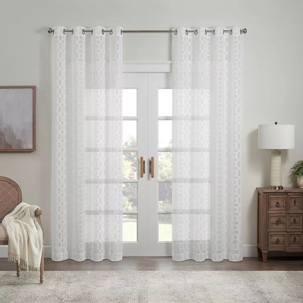Easily elevate the look and feel of your space with this stylish Waverly Eureka Burnout Sheer Grommeted Window Curtain Panel.
