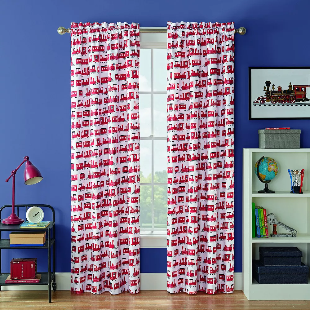 Bring their imaginations to life with whimsical window collections by Waverly Kids. This adorable Window Curtain features an allover red train motif on a white background.